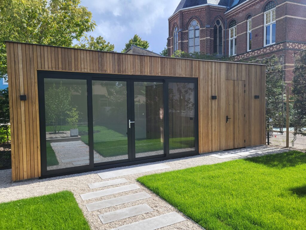 Het bijgebouw wordt grotendeels prefab voorbereid in onze werkplaats, van de constructie tot de afwerking. Hierdoor kunnen we efficiënt werken en een constante hoge kwaliteit garanderen. Vervolgens wordt het bijgebouw op locatie geplaatst en vakkundig gemonteerd. Aansluitingen worden direct verzorgd, zodat het gebouw snel in gebruik kan worden genomen.